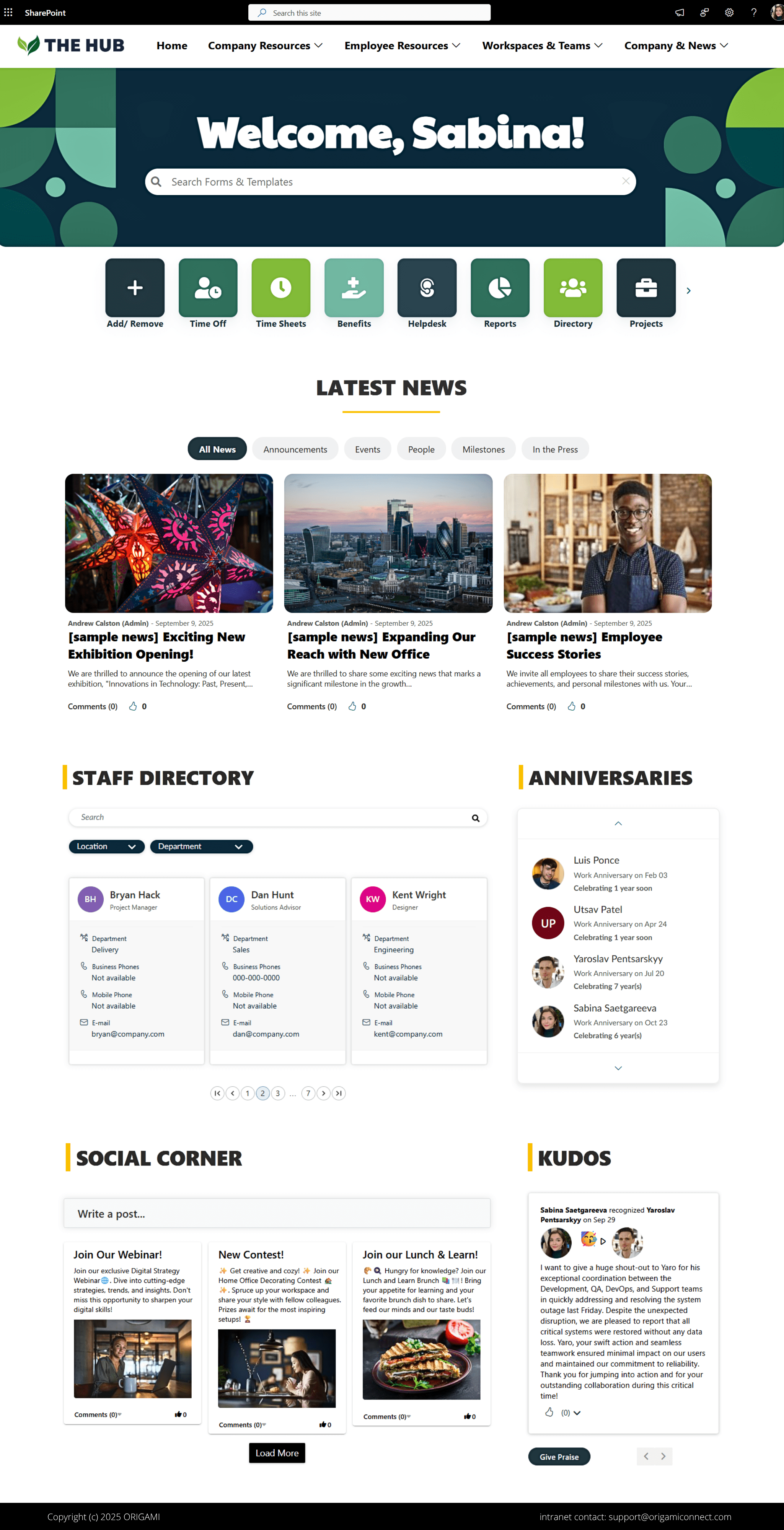 Here are the top examples of communication site templates we created for our customers. Some of these templates use Origami apps to make pages more user-friendly.